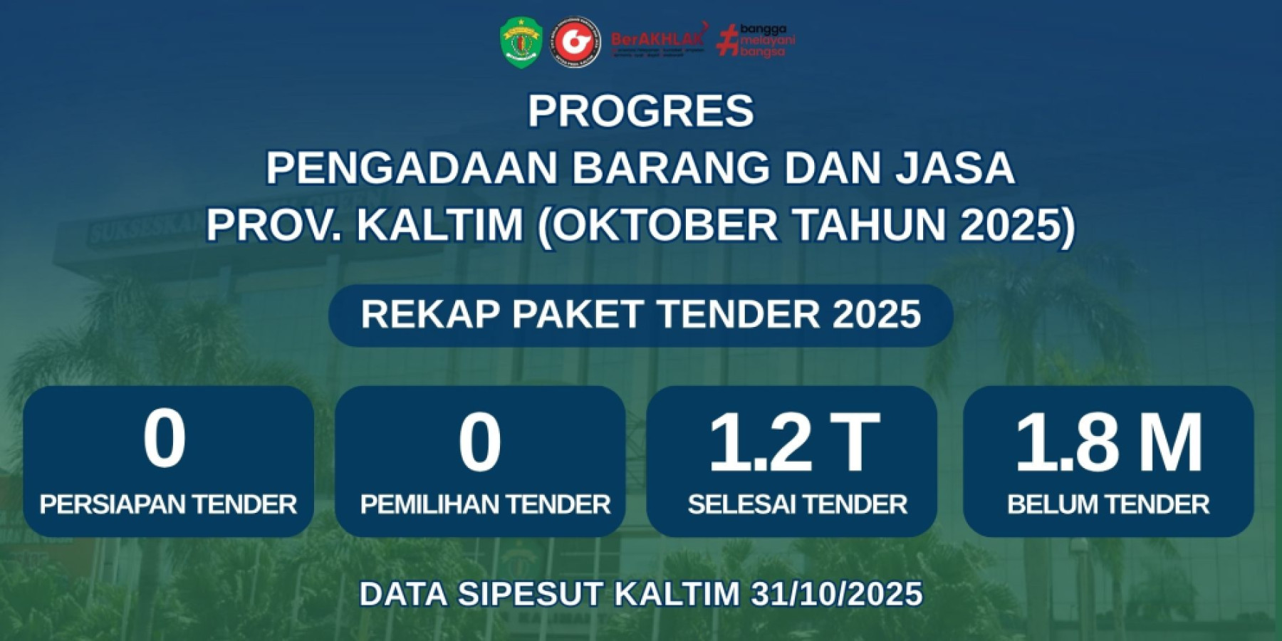 Berdasarkan data hingga 31 Oktober 2025, total nilai paket pengadaan melalui tender adalah sebagai berikut: